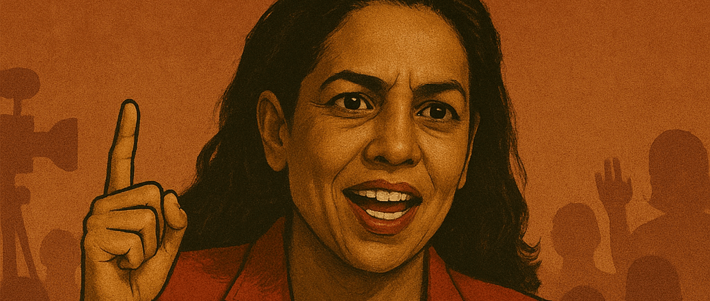 Jasmine Cortez draws heavily from Alexandria Ocasio-Cortez and Jasmine Crockett — two politicians who are fierce, unapologetic, and unafraid to confront power from inside the institution, even when that means clashing with their own party.